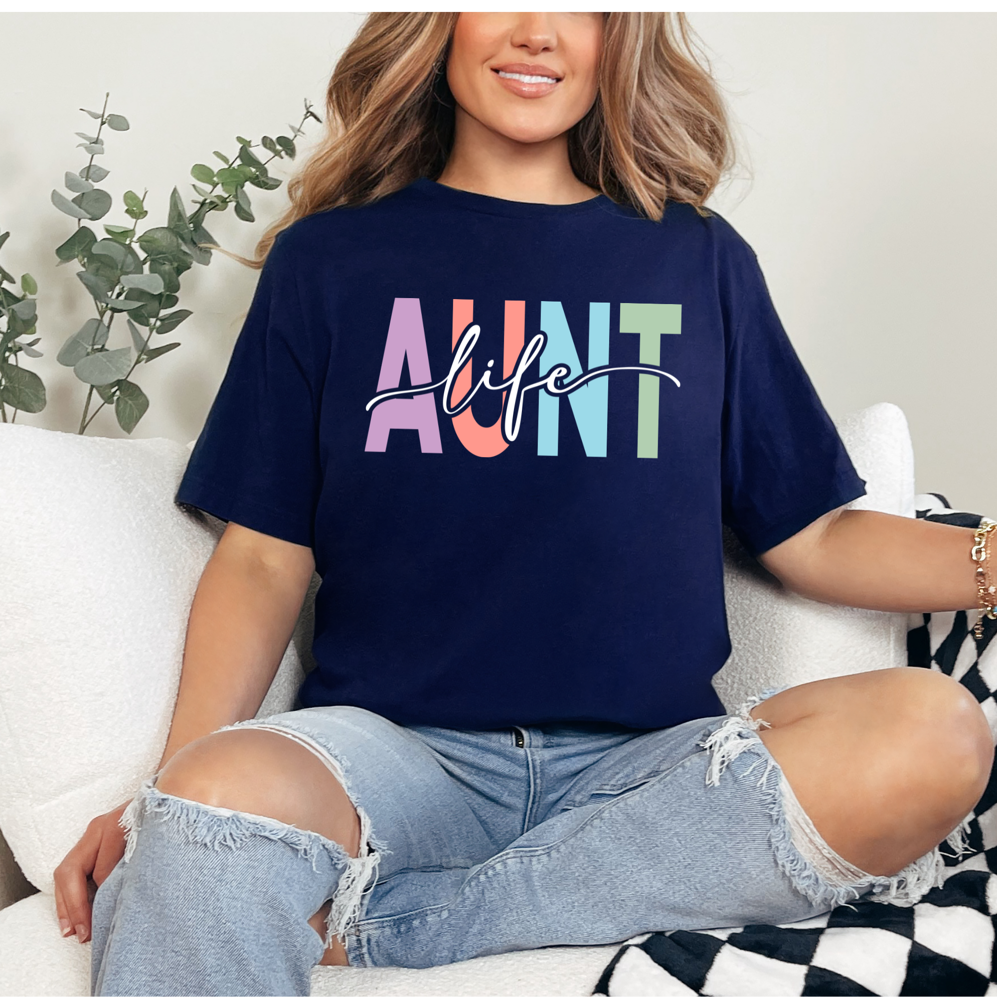 Celebrate your favorite title with our colorful “Aunt Life” tee! Fun, vibrant, and comfy, this shirt is perfect for cool aunts who know how to spoil their nieces and nephews in style..