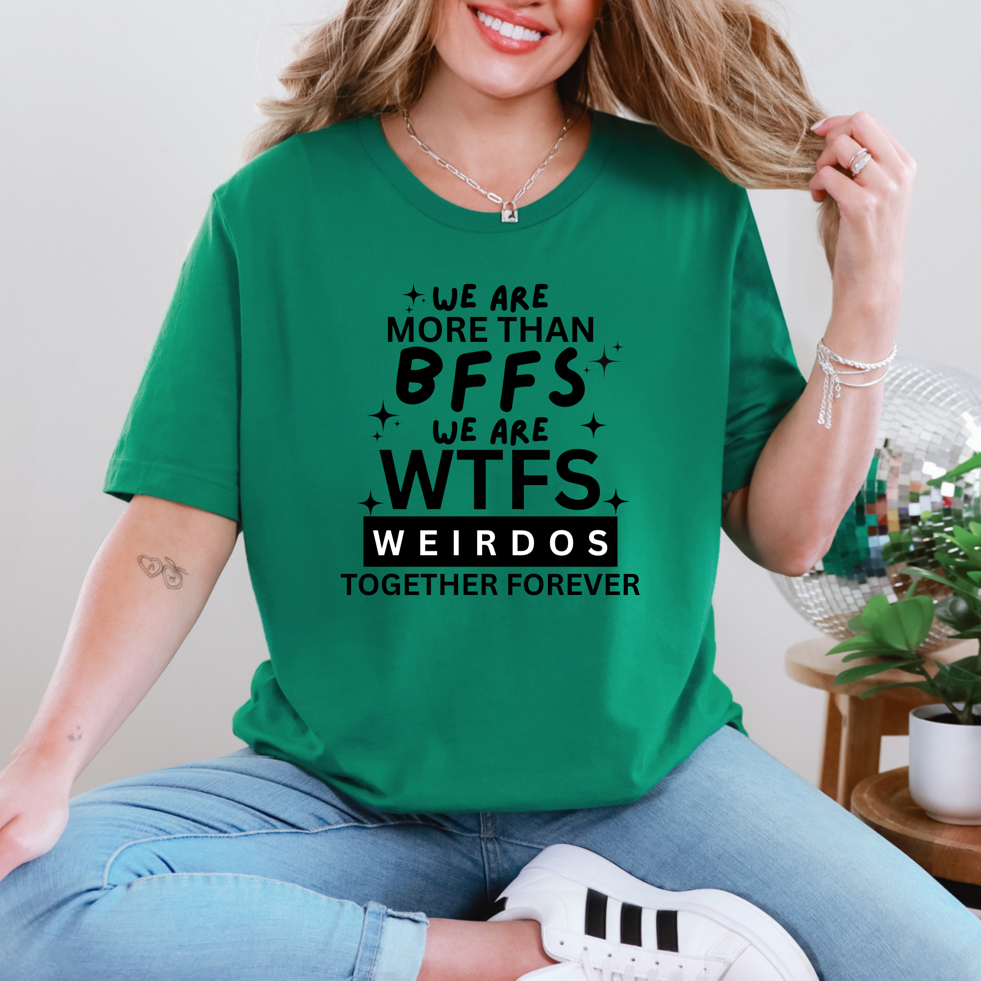 Celebrate your perfectly weird bond with our 'More Than BFFs – We’re WTFs' tee! Soft, comfy, and full of personality, this shirt is perfect for you and your ride-or-die bestie who loves to stand out together forever