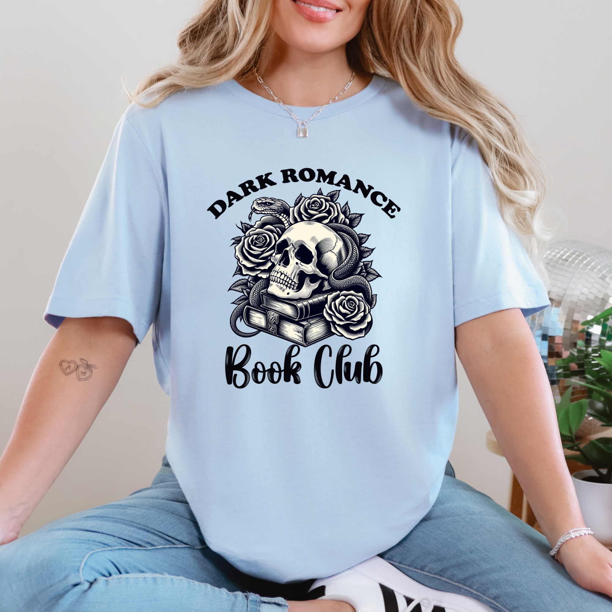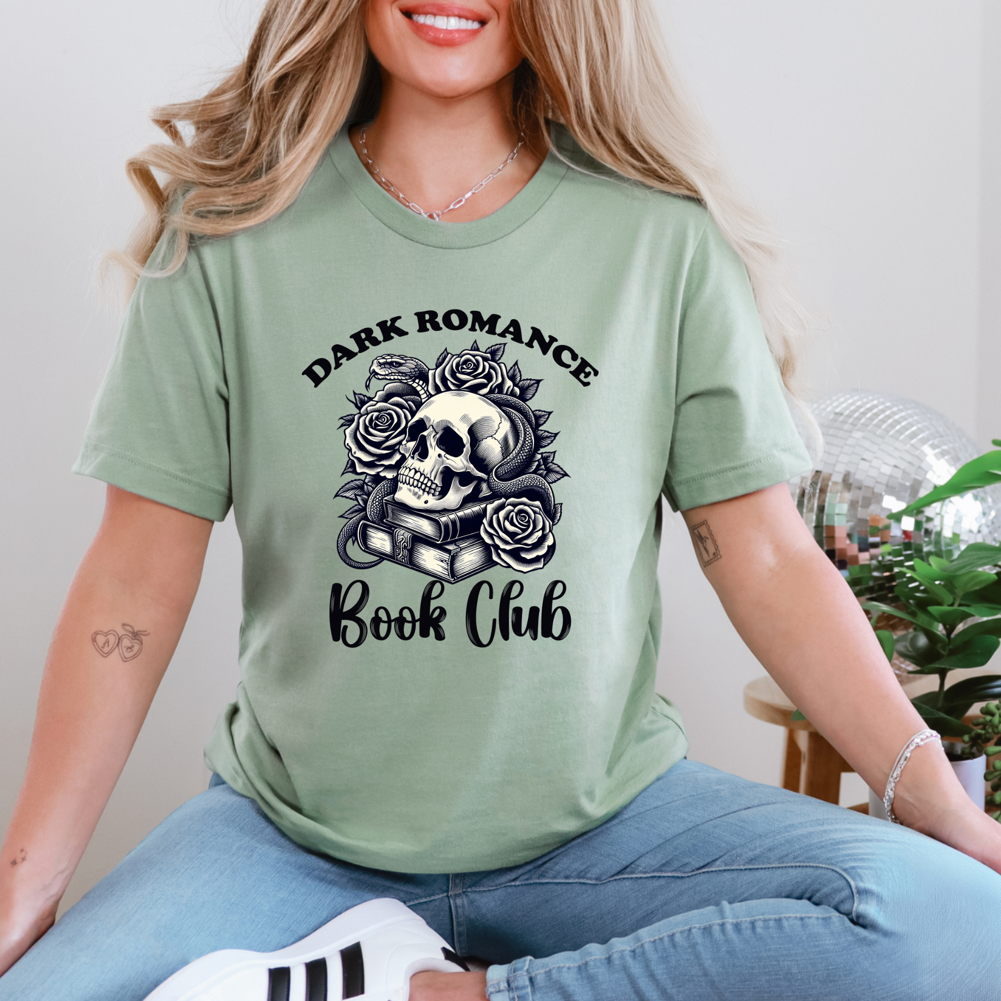 Join the club that reads with a little edge—our “Dark Romance Book Club” tee is perfect for lovers of steamy stories, brooding villains, and happily-ever-afters with a twist. Featuring a skull, roses, and gothic flair, this shirt is made for your next dark book binge.