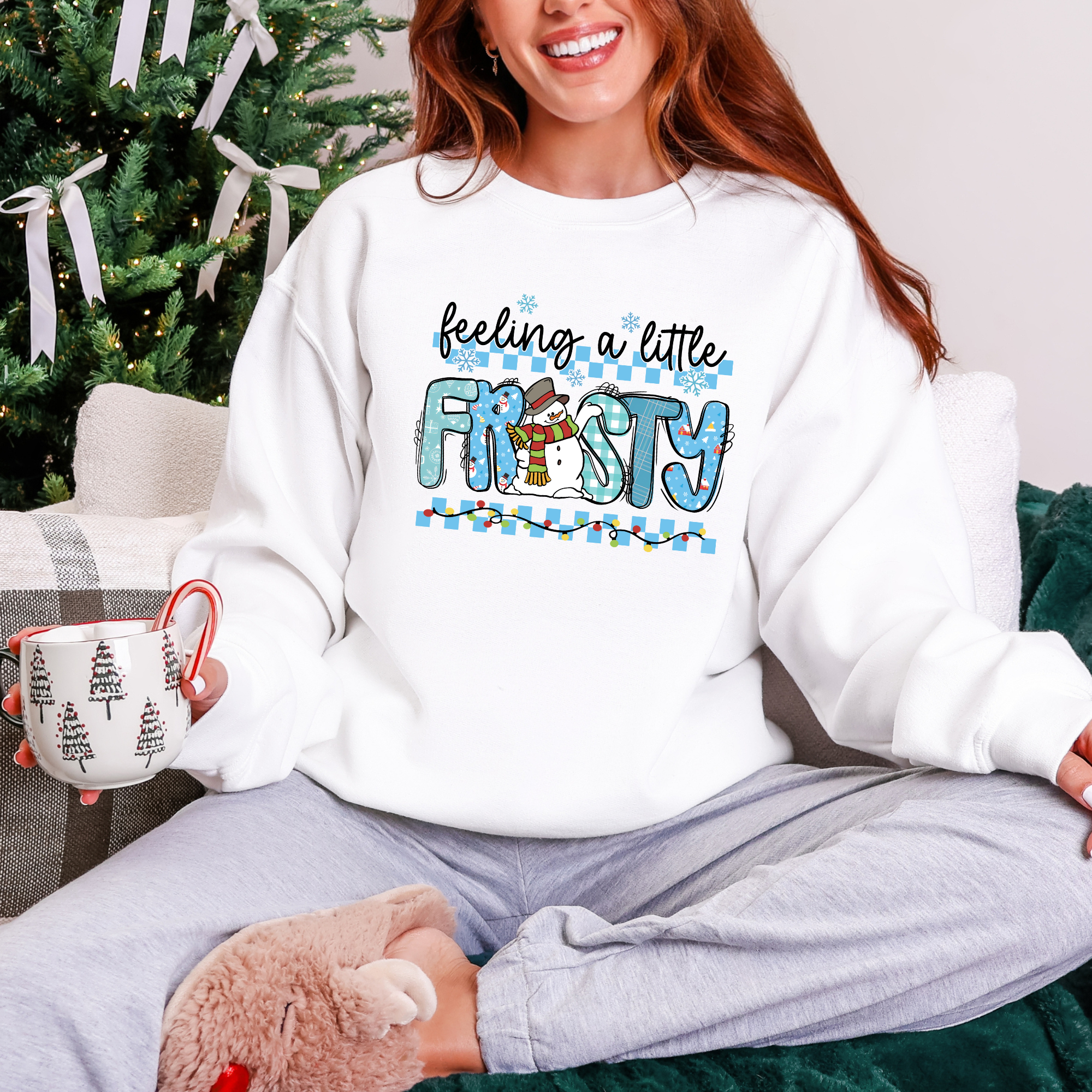 Bring on the chill with this adorable “Feeling a Little Frosty” sweatshirt! Featuring a cute snowman and festive lights, it’s the perfect cozy piece for winter days and holiday fun.