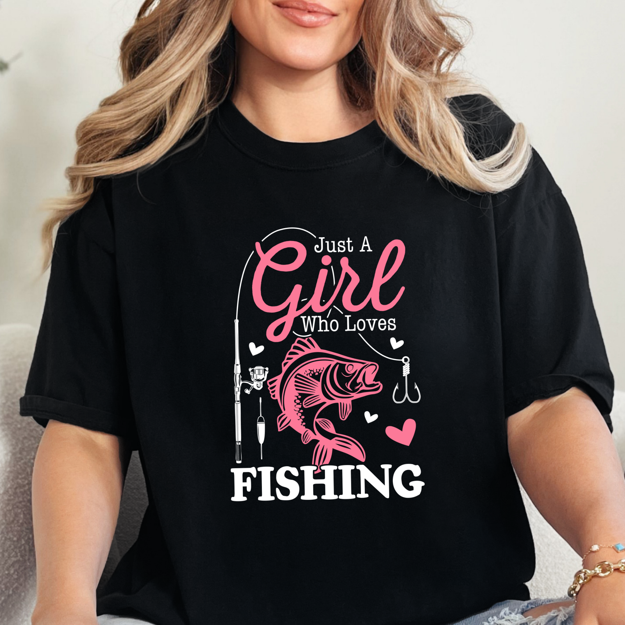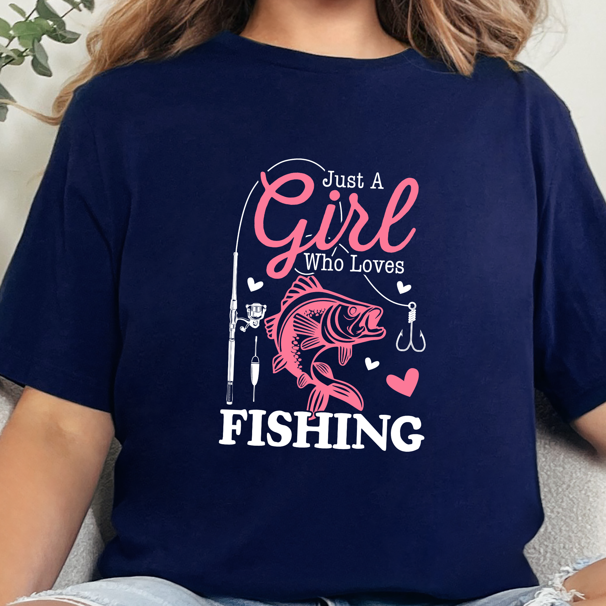 For the girls who would rather be on the water 🎣 This fun tee features the phrase “Just A Girl Who Loves Fishing” with a bold fish graphic, fishing rod, and cute accents—perfect for women who love casting a line.