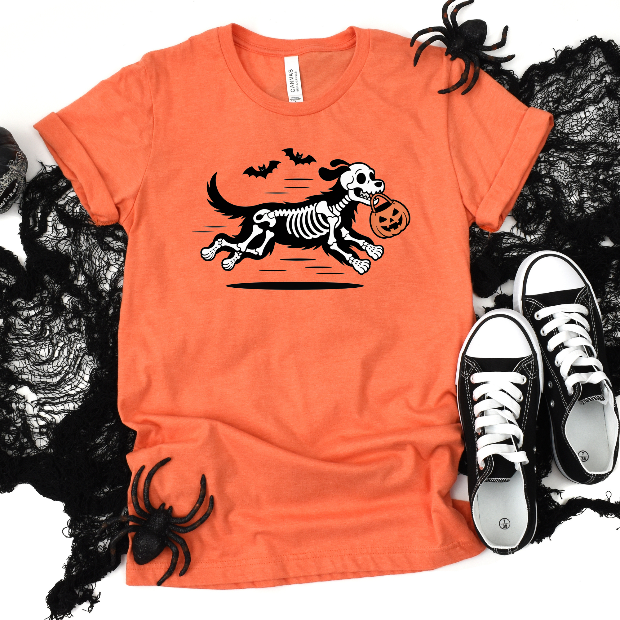 Bring the spooky vibes with this playful skeleton dog tee! Featuring a pup carrying a pumpkin with bats flying above, it’s the perfect mix of cute and creepy. Made with soft, breathable fabric, this shirt is ideal for Halloween parties, trick-or-treating, or just celebrating the spooky season in style. 🎃🐾
