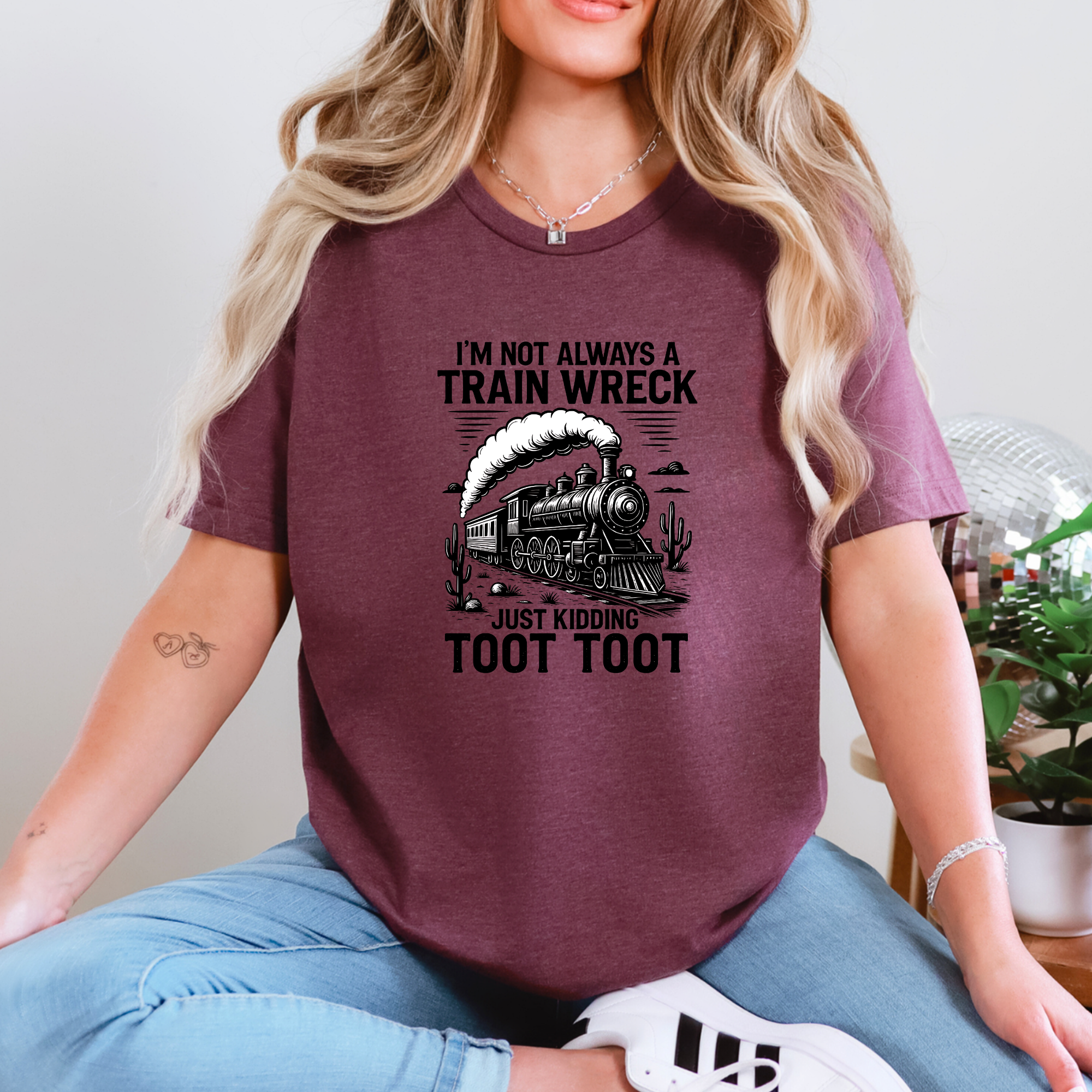 Stay stylish and witty with our “I’m Not Always a Train Wreck, Just Kidding Toot Toot” graphic tee. Perfect for casual days, this soft, comfy shirt brings humor and personality to your wardrobe. A fun conversation starter for everyday wear or gifting.